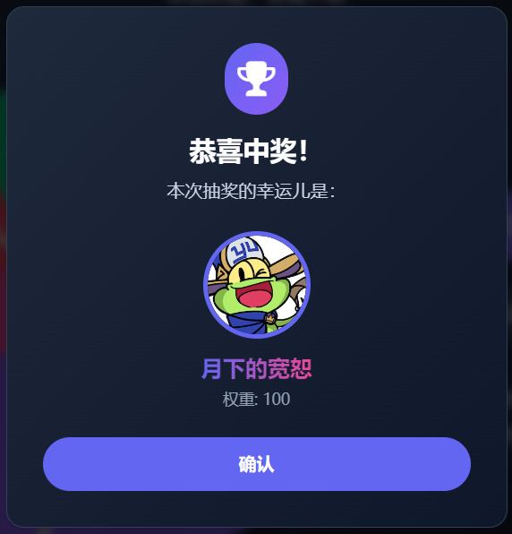 举例:打赏500营火,抽奖权重就是5,比起其他打赏100营火的玩家会有5倍的中奖几率