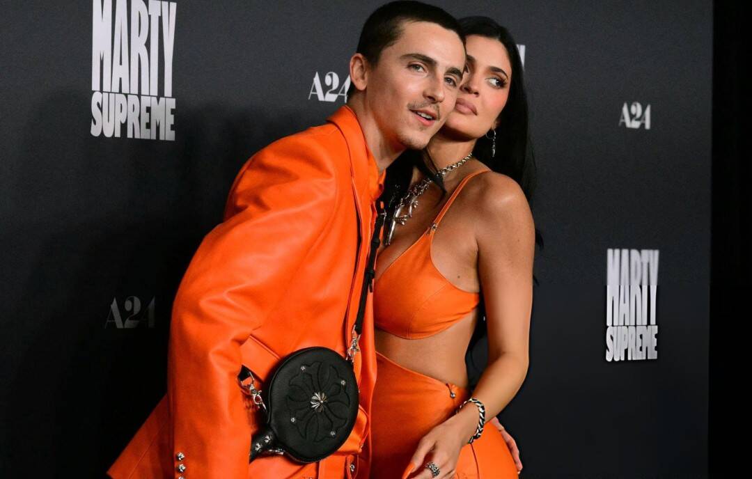 这对情侣身穿配套的橙色皮衣,在洛杉矶举行的电影《至尊马蒂(Marty Supreme)》首映礼上举止亲密,大秀恩爱。拍照时,这位男演员还亲昵地将手臂搭在Kylie Jenner的腰间,对着镜头大秀恩爱。