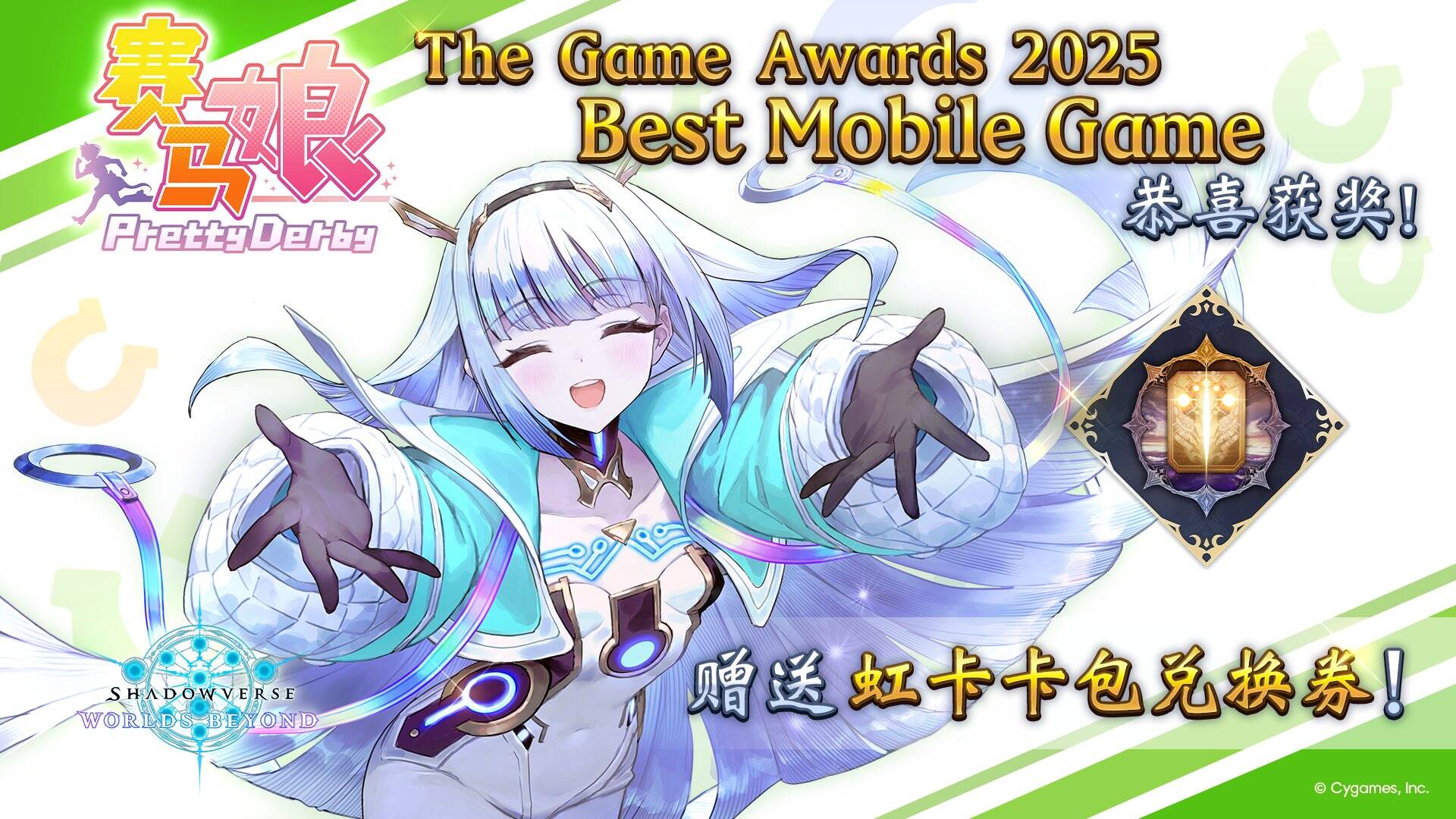 由Cygames运营的《赛马娘 Pretty Derby》于“The Game Awards 2025”获得了Best Mobile Game奖项! 为纪念获奖,特此与各位用户共同庆贺,我们向全体用户赠送了“1张虹卡卡包兑换券”!