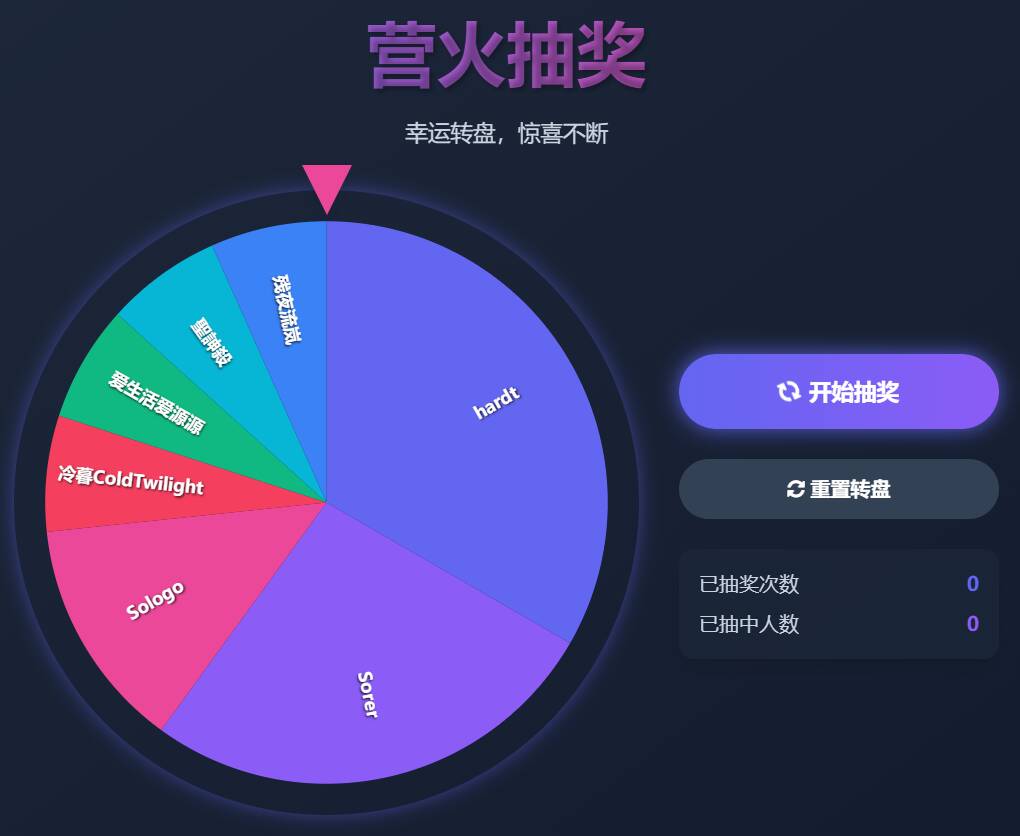 举例说明:张三打赏了500营火,李四和其他人打赏100营火,那么转盘如下,等于打赏多会增加你中奖的机会,但是并不能保证一定会中。