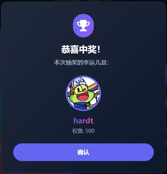 举例:打赏500营火,抽奖权重就是5,比起其他打赏100营火的玩家会有5倍的中奖几率