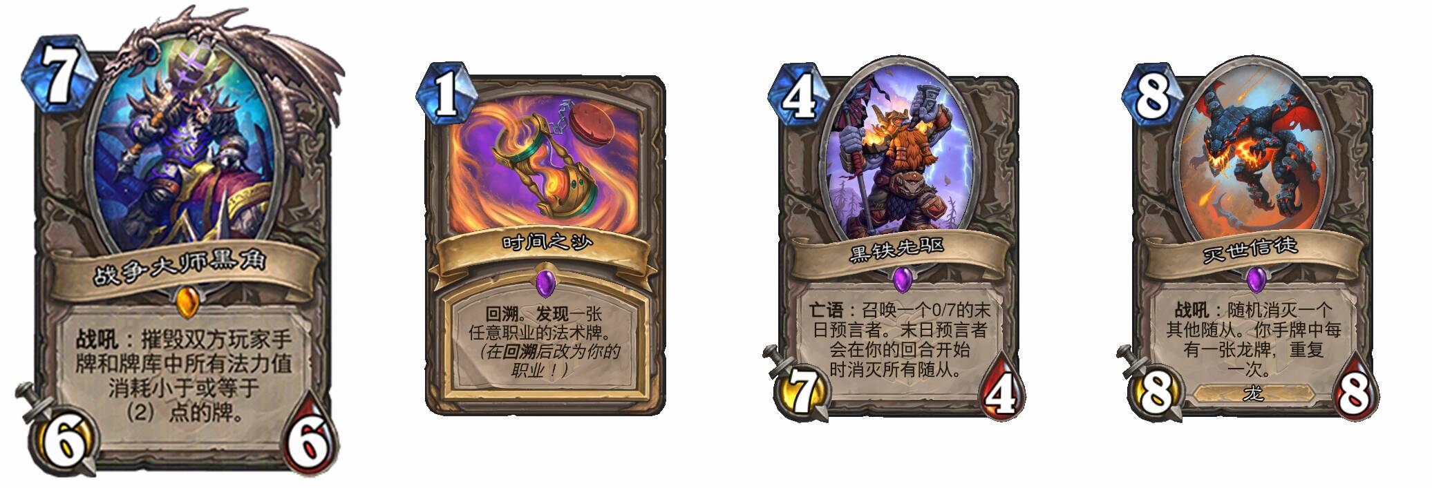 这个版本免费提前上线的牌有4张(含礼物牌),其中真正的免费提前上线橙战争大师黑角随34.6补丁上线,礼物牌时间之沙,黑铁先驱,灭世信徒随34.6期间的限时活动上线。