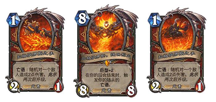 使用2次后兆示衍生物/兆示巨型附属物升级(身材效果翻倍),兆示英雄牌死亡之翼战吼效果升级(次数翻倍);再使用2次后再升级(再翻倍)