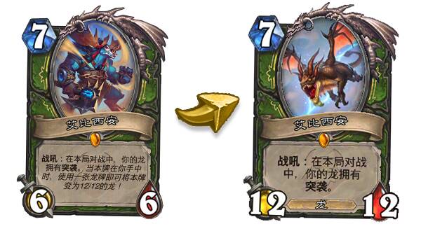 当本牌在你手中时,使用一张龙牌即可将本牌变为12/12的龙!
