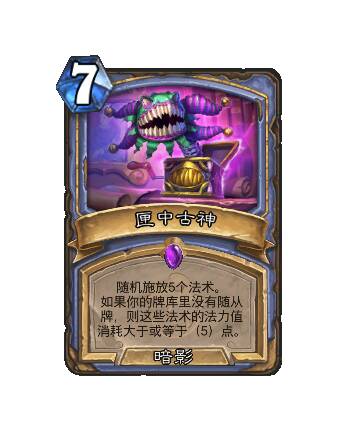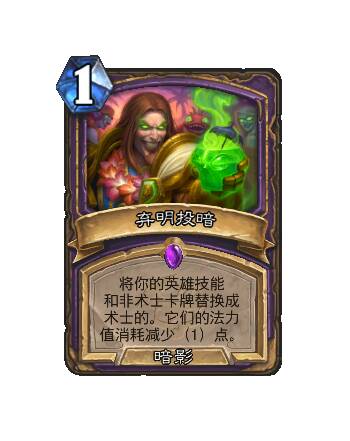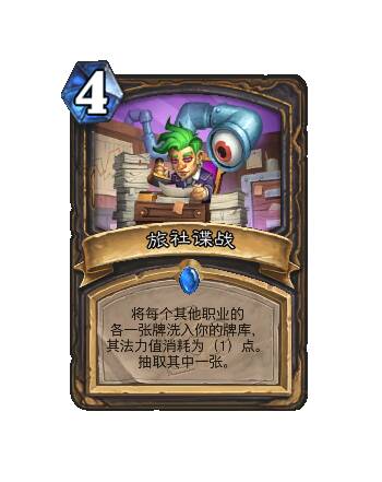 - 新:将每个其他职业的各一张牌洗入你的牌库,其法力值消耗为(1)点。抽取其中一张。