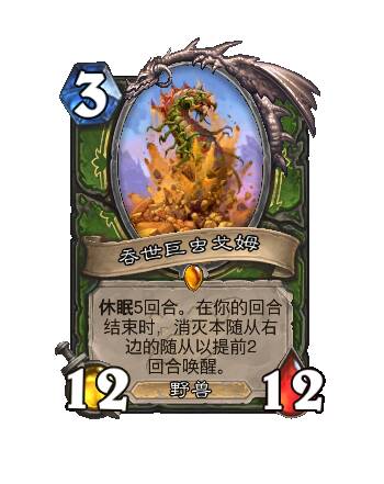 - 新:休眠5回合。在你的回合结束时,消灭本随从右边的随从以提前2回合唤醒。