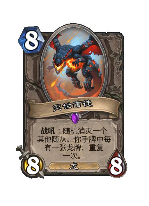 :随机消灭一个其他随从。你的手牌中每有一张龙牌,重复一次。