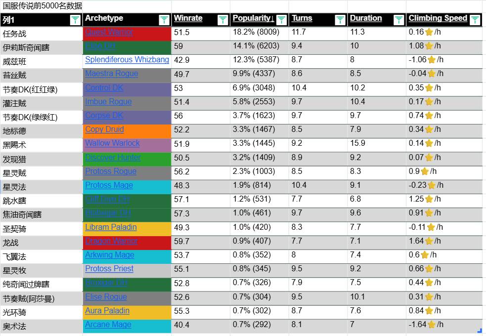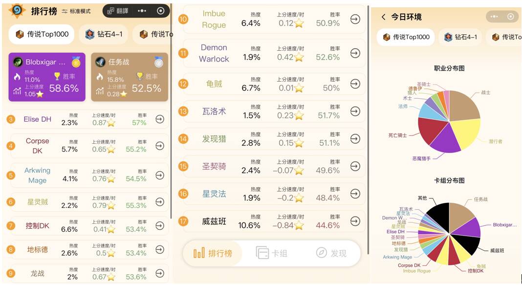 [链接] 驴子网 全服传说前1000分段 卡组数据 (微信小程序HS卡牌大师)