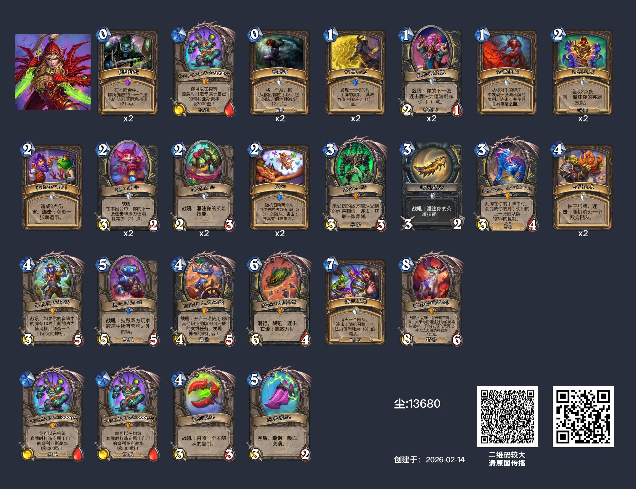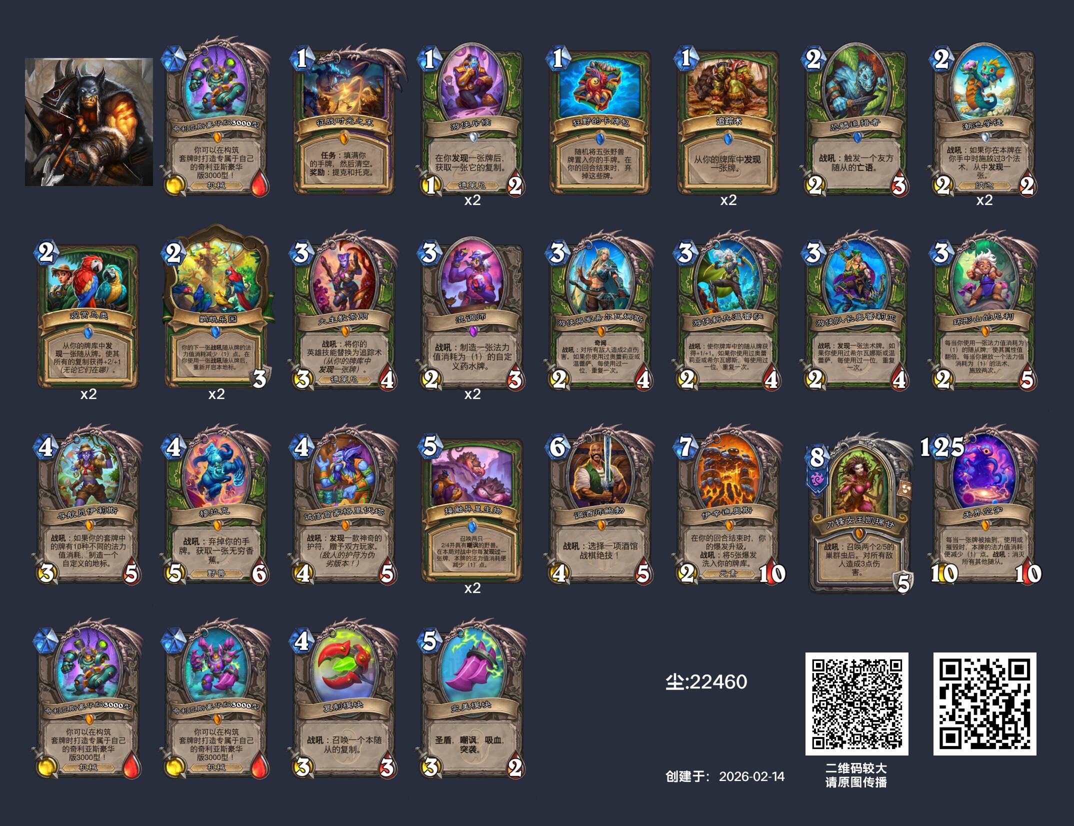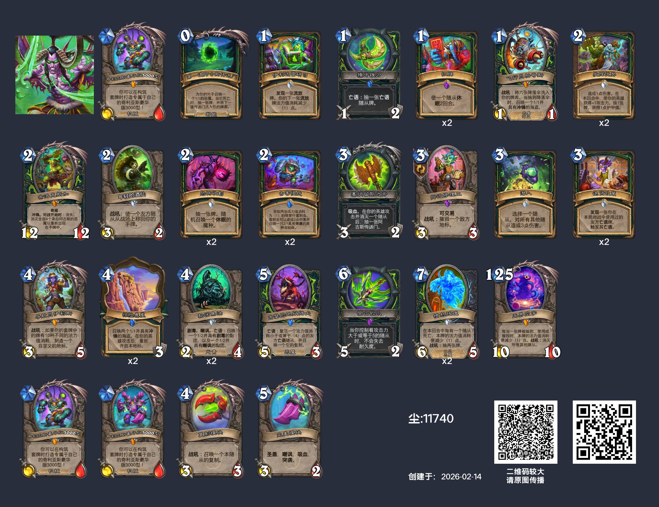苏雨欣晨 春节补丁后Day4顶分段卡组推荐【焦油节奏瞎/防战/星灵贼/变装贼/恶魔术/节奏dk/地标法德/任务发现猎】