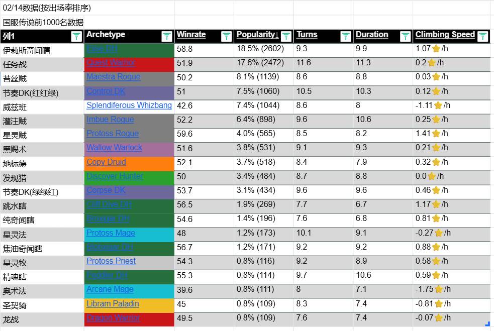 火石与HDT数据 02/10~02/14 各服标准传说前200名/玩家卡组汇总