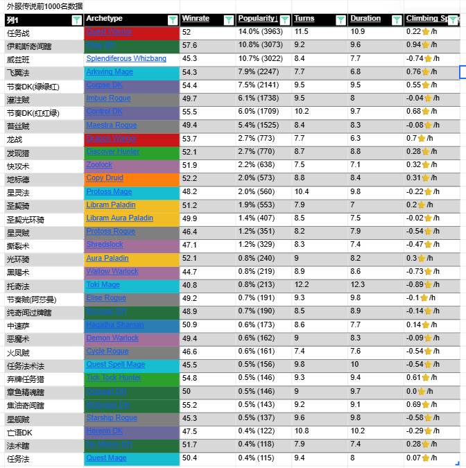 HSReplay 全服传说前1000数据 (微信小程序: HS石炉之家)