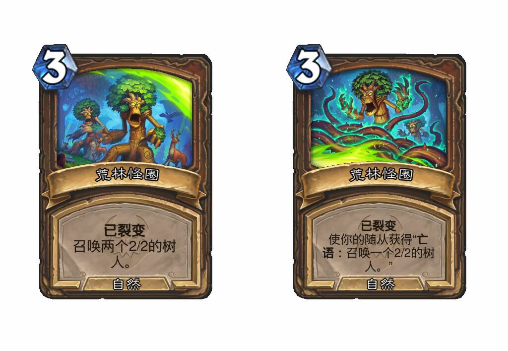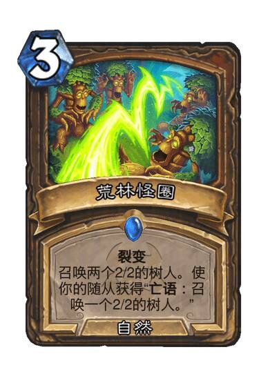 裂变。召唤两个2/2的树人。使你的随从获得“亡语:召唤一个2/2的树人。”