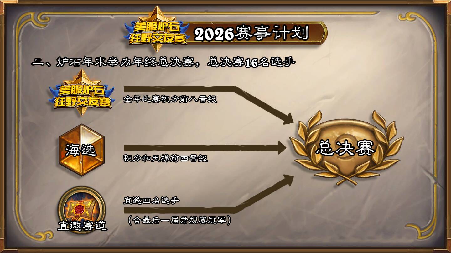我们会在炉石年末举办年终总决赛,共计16名选手,从三个渠道中选出。