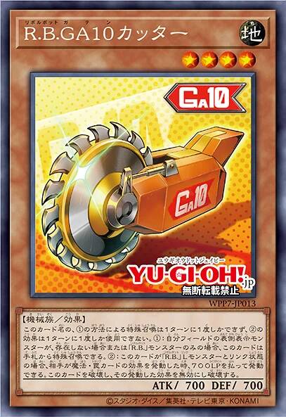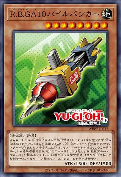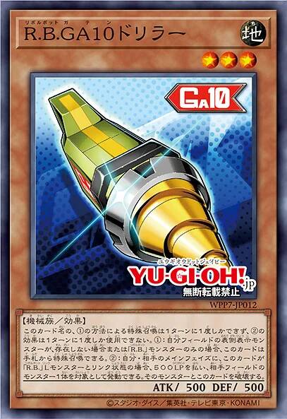 这个卡名的作为①的方法的特殊召唤1回合只能有1次,作为②的效果1回合只能使用1次。 ①:自己场上的表侧表示怪兽不存在的场合或者只有「旋转机械」怪兽的场合,这张卡可以从手牌特殊召唤。 ②:自己·对手的主要阶段,这张卡和「旋转机械」连接怪兽是连接状态的场合,支付500基本分,以对手场上的1只怪兽作为对象才能发动。那只怪兽和这张卡破坏。